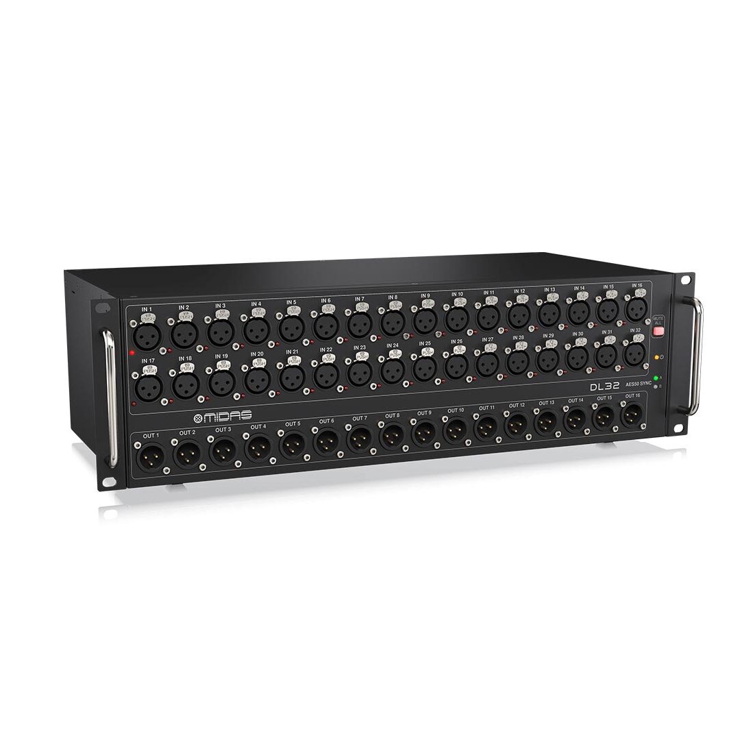 Die Midas DL32 ist eine hochmoderne, digitale Stagebox, die entwickelt wurde, um die I/O-Kapazität jedes Midas Digitalmischpults (wie M32 oder PRO-Serie) über ein einziges Cat5-Kabel drastisch zu erweitern. Sie liefert die legendäre Midas Klangqualität direkt von der Bühne.