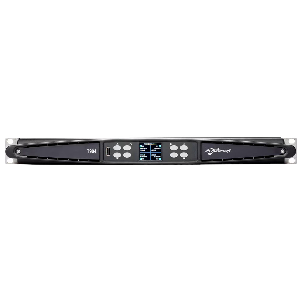 Die Powersoft T904 ist eine extrem leistungsstarke 4-Kanal Touring-Endstufe mit integriertem DSP und Dante-Audiovernetzung. Entwickelt für höchste Ansprüche im professionellen PA- und Touring-Bereich, kombiniert sie maximale Leistung, präzise Kontrolle und modernste Netzwerktechnik in einem kompakten, zuverlässigen Gerät.